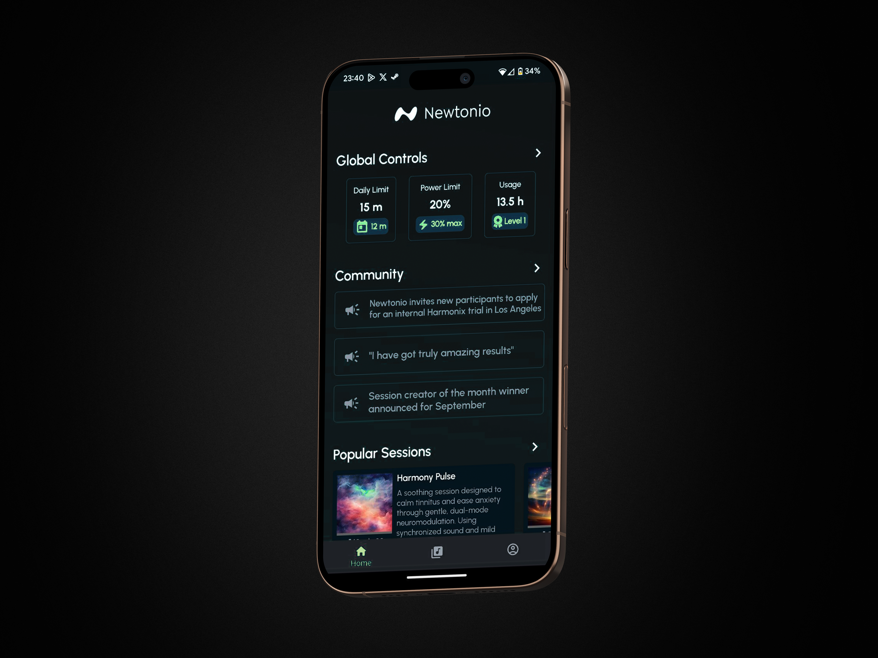 The Newtonio app tailors each session based on your goals—whether it’s to alleviate stress, reduce tinnitus, or support brain productivity.
